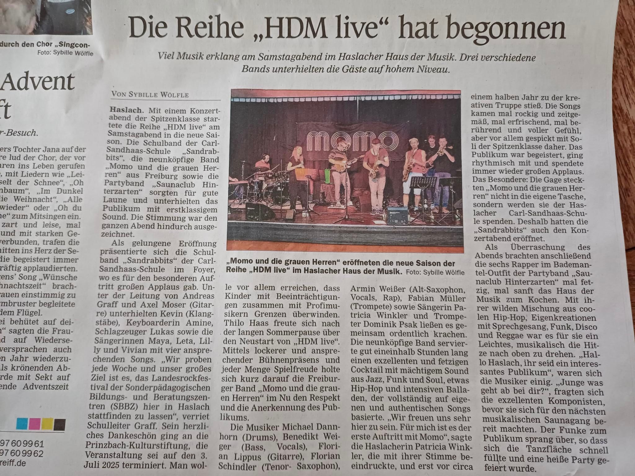 #1 Zeitungsbericht über den Auftritt in Haslach Kinzigtal 2024